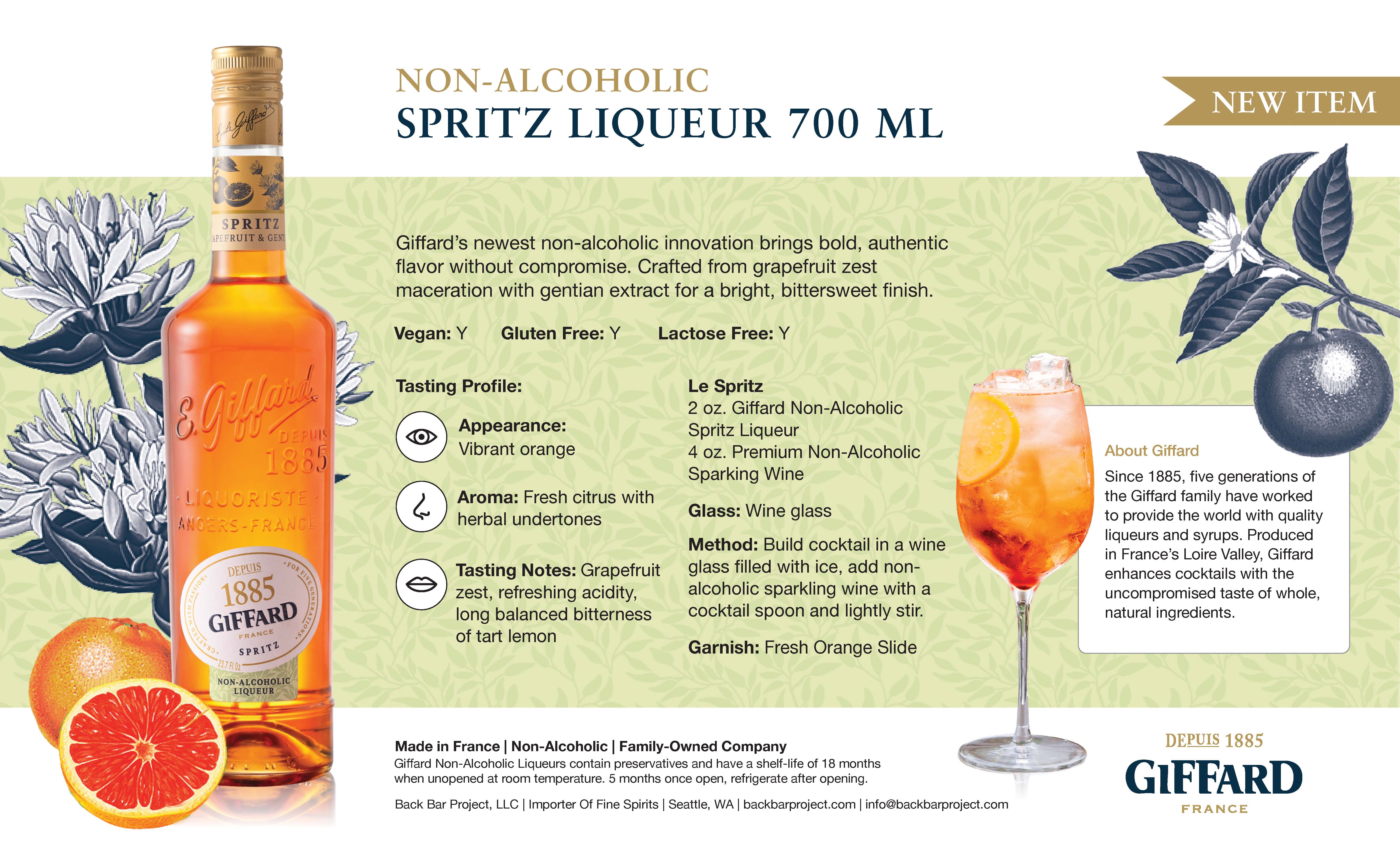 Non-Alcoholic Spritz Liqueur Single - Sell Sheet